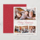 Send stylish season's greetings to family and friends with these modern photo cards! This budget and rustic design features 4 of your favourite photos in a simple collage layout. One rectangular photo is showcased at the top, with three square photos in a row at the bottom. The text reads "Merry Christmas and happy new year!" in red script and simple typography. Your family name, names, and the year appears at the bottom of the card. The background is an image of rustic wood slats. The reverse features a polka dot snow pattern against a festive red background. As part of the budget selection on Zazzle, this sheet isn't a standard invite size or paper quality. If you want this design on an invitation card you can find it in our store or use the Zazzle Make Machine to transfer it onto the product of your choice. Message me if you have any questions - I'll be happy to help and check out my store for matching items!