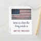 Home is Where the Army send us! Rustic American Flag Military Moving Announcements . This rustic American Flag PCS Move announcements are perfect for a all military moving announcement, army moving announcements. Personalise this american flag moving announcement with your family name, and new address. These budget military moving announcements postcards need to be mailed as oversized postcards so may incur standard postage fees but they don't need an envelope or a return address label.