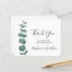 This budget thank you card features watercolor eucalyptus and stylish script typography.