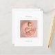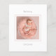 Minimal Photo Baby Girl Birth Announcement. A budget price SMALLER 4.5” x 5.6” alternative to announce your exciting news! Available in a SEMI-GLOSS 110 lb CARD STOCK which is the default option (thicker for invitations), OR a SATIN FINISH 80 lb THINNER PAPER STOCK (ideal for enclosures). Envelopes are an optional extra and are slightly larger than the card size. A simple minimalist design to announce the arrival of your baby girl Simply replace the sample photo with your own of your new arrival and easily personalise the text on the front and back.