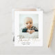 Budget Minimal Script Photo Baby Thank You Card. The back includes a message from the family and a 2nd photo. Click the edit button to customise this design with your photos and details.