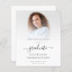 A value for money BUDGET alternative on a smaller size 4.5 x 5.6” semi-gloss 110lbs weight, which is of similar thickness to a postcard (however is not suitable to use as a postcard.). PLEASE NOTE there is ONE per sheet. Budget Minimalist 2024 Grad Photo Graduation Announcement. Simple elegance to send your happy news of your grad. Graduate is in a stylish script with elegant swashes. Easily personalise the text to your own requirements including on the reverse, and replace the sample image with your own.