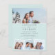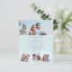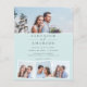 This budget wedding invitation features a header photo with a 3 photo collage on the bottom with a white border around them. Your wedding details are displayed in elegant minimalist typography placed against a chic pastel blue background.