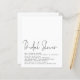 A value for money BUDGET alternative on a smaller size 4.5 x 5.6” semi-gloss 110lbs weight, which is of similar thickness to a postcard (however is not suitable to use as a postcard.). PLEASE NOTE there is ONE invite per sheet Minimalist Script Bridal Shower Invite. Lots of white space for a contemporary style. The occasion header is large in stylish lowercase with the details at the bottom. Easily personalise the text to your own details.