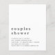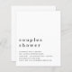 Budget Minimalist Text Couples Shower Invite. A budget friendly SMALLER 4.5” x 5.6” alternative. Available in a SEMI GLOSS 110 lb CARD STOCK or a SATIN FINISH 80 lb THINNER PAPER STOCK. Envelopes are an optional extra. Informal style. The header is large in stylish lowercase with the details at the beneath. Lots of white space at the top for a contemporary feel! Easily personalise the text to your own details.