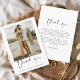 Elevate your gratitude with our elegant thank you cards featuring modern script and your favourite wedding photo. These cards offer a stylish and minimalist design that perfectly complements any wedding aesthetic. Personalise them with a heartfelt message of appreciation to convey your thanks to friends and family for their love and support. Crafted with high-quality materials, these cards provide a sleek and sophisticated way to express your gratitude. Whether you're thanking guests for their presence or gifts, our Modern Script Simple Photo Wedding Thank You Cards add a personal touch to your expressions of thanks. With their clean lines and contemporary charm, they create a lasting impression that reflects the beauty of your special day. Share your gratitude in style with our Modern Script Simple Photo Wedding Thank You Cards, and let your appreciation shine through with every word.