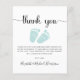 Thank your baby shower guests with this budget-friendly cute thank you card with "thank you" in a stylish script with swashes and a mint green watercolor of baby feet. Underneath you can easily personalise your thank you message or leave blank for a handwritten note.
