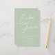 BUDGET Modern Pastel Mint Sage Green Simple Handwritten Script Baby Shower Invitations. These Budget Baby Shower Invitations are modern handwritten script invitations that come in a variety of colours, sizes and styles. They're perfect for baby showers for baby girls, baby boys and gender neutral showers. The best part is that they're easy to customise, so you can make them match your unique shower theme perfectly! Plus, they're budget friendly, so you can get the perfect invites without spending a fortune. **Our BUDGET paper is smaller and more delicate, but still beautiful!** For a comparison of paper types, please watch our video here: https://youtu.be/G0F9Am5HPD4 If you need assistance or matching items, please contact us at cedarandstring@gmail.com.