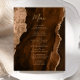 This elegant modern wedding menu features a mocha brown watercolor agate border trimmed with faux gold glitter. The customizable text combines gold-colored handwriting script and copperplate fonts. The reverse side features a matching brown and gold agate design.