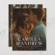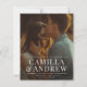 A budget modern 2 photo elegant wedding invitation with white type overlay large names and a full bleed photo on the front. The back has a second photo. Click the edit button to customize this design.