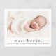 A sweet photo birth announcement featuring modern name horizontal landscape photo on the front. The back has an additional 2 photos with a large full name header and personal message from the family. Click the edit button to customise this design with your photos and details.