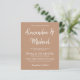 Elegant trendy typography budget affordable wedding invitation in simple peach beige and white hand lettering featuring big bride's and groom's names calligraphy script. ++++++++++++++++++ You can change colours of text and background after selecting CUSTOMIZE further option. ++++++++++ The invitation is suitable for any season - spring, summer, autumn, winter - indoor wedding reception.