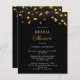 This Budget Modern Black and Gold Bridal Shower Flyer - features golden script and shining golden polka dots on the trendy elegance black background. The reverse side of the bridal invitation is black with shining golden polka dots.