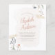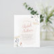Modern invite design with a pastel pink brushstroke overlay, simple floral arrangements, and faux gold dust sprinkles. The bride's name appears in a script lettering. The bridal shower event details appear below in simple typography. Cards reverse to an elegant pattern of the flowers and greenery featured on the front. As part of the budget selection on Zazzle, this sheet isn't a standard invite size or paper quality. If you want this design on an invitation card you can find it in our store or use the Zazzle Make Machine to transfer it onto the product of your choice.