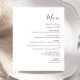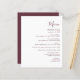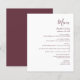 This simple modern wedding menu features burgundy text on a white background. The word "Menu" appear in stylish handwriting calligraphy. Add the couple's name and wedding date in script and italics, along with menu detail in sans serif font. The reverse side is a matching shade of solid burgundy.
