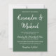 Elegant trendy typography budget affordable wedding invitation in simple mute hunter green and white hand lettering featuring big bride's and groom's names calligraphy script. ++++++++++++++++++ You can change colours of text and background after selecting CUSTOMIZE further option. ++++++++++ The invitation is suitable for any season - spring, summer, autumn, winter - indoor wedding reception.