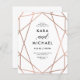 This modern wedding invitation features a faux rose gold, geometric design on a stylish white background.