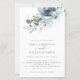 Modern Florals Christmas Wedding Invitation. A LARGER size 5.5” x 8.5” at a budget price, on a SEMI GLOSS 110 lb CARD STOCK, great for invitations, at roughly the same thickness as a postcard, or an elegant 110 lb LINEN stock – for a luxury, slightly thinner feel at great value. PLEASE NOTE THE OPTIONAL ENVELOPES ARE A LITTLE BIGGER IN SIZE AT 6.75” x 9” approx. This budget size alternative is also available in other paper choices. The FELT 100 lbs paper is buff coloured, NOT white, so adds a rustic touch. The MATTE 80lbs paper stock is bright white, for crisp printing, great for your menus and programs, whilst the SATIN 80lbs paper is thin and light, ideal for enclosures. Christmassy teal and powder blue florals and foliage flow from the top and elegant text centred below. Easily personalise the text to your own details.