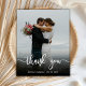 Budget Modern Script Wedding one Photo Thank You personalized affordable low budget flyer. Modern Stylish wedding thank you paper template featuring a full vertical photo on the front with text overlay "Thank You" script in a hand lettered typography font in white color on the picture. At the backing one horizontal photo and your thank you message template. ***PLEASE NOTE! *** BUDGET PAPER/FLYER IS PAPER THIN. NO ENVELOPES INCLUDED.*** UPGRADE THE PAPER FOR A THICKER PAPER. *** Postcard: https://www.zazzle.com/modern_hand_lettered_wedding_photo_thank_you_postcard-239089626384296356 Traditional Cardstock with Envelopes: https://www.zazzle.com/modern_hand_lettered_wedding_photo_thank_you_card-256357026331958674 Personalize the custom name and thank you message. If you prefer to handwrite your note, just delete the sample text to make more space. If You need help or matching item, please contact to designer!
