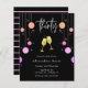 Celebrate the big 30th birthday in style and affordability with this modern girly 30th birthday invitation. Design features the word "thirty" in a modern handwritten script font with a border of colourful sparkle glitter drops and two gold champagne glasses toasting. Bottom of the card showcases the details of the birthday celebration which can be totally customised to your needs. The reverse side feature a pretty striped pink glam glitter pattern.