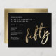 Modern minimalist 50th birthday party invitation features stylish faux gold foil number handwritten bold script fifty and your party details in classic serif font on black background colour, simple and elegant, great surprise adult milestone birthday invitation for men and women. The black background colour can be changed to any colour of your choice.
