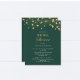 This Budget Modern Minimalist Green and Gold Bridal Shower Flyer - features golden script and shining golden polka dots on the trendy elegance green background. The reverse side of the bridal invitation is green with shining golden polka dots.