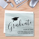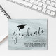This design features a print of grey coloured glass in the background with a graduation cap.