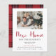 Budget Script New Home for Holidays Photo Moving Holiday Card Back with Christmas Holiday Tartan Plaid Pattern