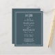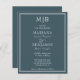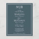 Budget modern boho blue lined border minimalist wedding invitations templates with initials at the top for you to customise.