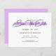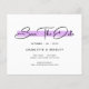 Budget Modern Minimalist Script Save The Date Invitation Card features "Save The Date" in an elegant black script over a modern purple accent on a white background with your Save The Date information below. Personalise by editing the text in the text boxes provided. Designed for you by ©Evco Studio www.zazzle.com/store/evcostudio