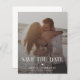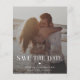 Simple elegant trendy engagement photo double sided casual destination BUDGET AFFORDABLE wedding save the date card template in neutral black and white typography. Suitable for modern weddings.
