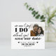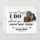 Simple black and white trendy bold typography wedding funny casual engagement photo budget affordable wedding save the date card with a fun "we can't say I do without you" modern handwritten calligraphy script quote.