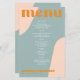 Abstract shapes retro vintage 70s style unique budget affordable wedding menu card with bold typography in a pastel trendy modern dusty blue, soft pink and orange chic color palette. +++++++ Please note that all the colors are changeable. ++++++++++++ Suitable for informal casual stylish contemporary weddings.