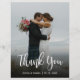 Budget, Modern Hand Lettered Script Wedding Photo Thank You personalised affordable low budget flyer. Modern Stylish wedding thank you paper template featuring a full vertical photo on the front with the text "Thank You" in a huge hand lettered typography brush script font (overlay) in white on the picture.