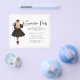 Budget Modern Script Graduation Party Invitation - featuring a lovely graduate carrying her diploma and a bouquet of pink roses. Invitation also features pretty, modern script typography. Invitation is rimmed in a thin gold border.