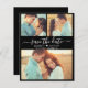 Budget modern elegant script 3 photo collage black wedding save the date announcement personalised affordable low budget flyer. Chic minimalist design template feature three (3) couple photo and elegant hand lettered typography script „Save the Date” text in white on black background. Between the names a cute little love heart motif. ***PLEASE NOTE! *** BUDGET PAPER/FLYER IS PAPER THIN. ENVELOPES INCLUDED.*** UPGRADE THE PAPER FOR A THICKER PAPER. *** If you need help or matching items, please contact me.