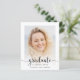 Announce your child’s graduation and save money with this unique stylish modern script 2-photo graduate announcement card on cheaper paper, which is easily customisable with the text and photo templates.