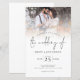 PLEASE NOTE there is ONE invite per sheet. Budget Photo QR Code Script Wedding Invitation. A LARGER size 5.5” x 8.5” at a budget price. PLEASE NOTE THE OPTIONAL ENVELOPES ARE A LITTLE BIGGER IN SIZE AT 6.75” x 9” approx. Budget Modern Script Photo Overlay Wedding Invitation. A stylish set typography in black for the main heading the Wedding Of complementing the rest of the text which you can easily personalise. Replace the sample photo with your own favourite.