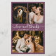 Budget, Modern, Elegant, Handwritten 3 Photo Collage Mauve Wedding Thank You Card. Minimalist wedding thank you card template featuring three (3) photo on the front and (1) one photo on the back side. With the text "Love and thanks" script in a cursive hand lettered calligraphy swash-tail font in white colour on mauve or dusty plum purple colour background. Little heart between the names. Personalise your custom name and thank you message. If you prefer to handwrite your note, just delete the sample text to make more space. If You need help or matching item, please contact designer!