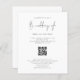 A budget priced smaller 4.5 x 5.6” 110lbs semi-gloss, similar in thickness to a postcard. There is ONE per sheet. Budget Modern Script QR Code Wedding Invitation. Add your QR code to your wedding website so your guests can RSVP and see all the details online without the need for separate enclosures. An informal set typography in black for the main heading the Wedding Of complementing the rest of the text which you can easily personalise.