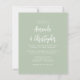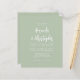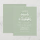This simple modern wedding invitation features white text on a sage green background. Add the names of the bride and groom in stylish handwriting calligraphy and the details in sans serif font. The reverse side is a matching shade of solid sage green.