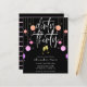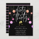 Celebrate the big 30th birthday in style and affordability with this modern colourful sparkle 30th birthday invitation. Design features the words " dirty thirty" in a modern handwritten script font with a border of colourful sparkle glitter drops and two gold champagne glasses toasting. Bottom of the card showcases the details of the birthday celebration which can be totally customised to your needs. The reverse side feature a pretty striped pink glam glitter pattern.