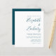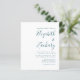 This simple modern wedding invitation features teal blue text on a white background. Add the names of the bride and groom in stylish handwriting calligraphy and the details in sans serif font. The reverse side is a matching shade of solid teal. NOTE: Envelopes are not automatically included with these budget invitations, so please remember to choose the "white envelopes" option!