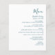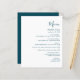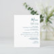 This simple modern wedding menu features teal blue text on a white background. The word "Menu" appear in stylish handwriting calligraphy. Add the couple's name and wedding date in script and italics, along with menu detail in sans serif font. The reverse side is a matching shade of solid teal.