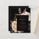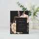 This elegant, moody wedding invitation features a lush, romantic floral bouquet in ivory with rose gold faux foil and glitter foliage on a black background. Customise the rose pink text in stylish fonts on a black rectangle. The back of the card is solid black.