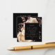 This elegant, moody wedding RSVP card features a lush, romantic floral bouquet in ivory with rose gold faux foil and glitter foliage on a black background. Customise the rose pink text in stylish fonts on a black rectangle. Easily generate a QR code on the back by entering your wedding website URL.