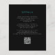 This elegant, moody wedding invitation features a lush, romantic floral bouquet in teal blue with silver faux foil and glitter foliage on a black background. Customise the teal and silver grey text in stylish fonts on a dark rectangle. The reverse side provides space for wedding details on a solid black background, along with a QR code guests can scan to visit your website and RSVP, which saves the cost of printing and mailing separate RSVP cards.