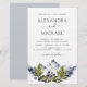 Budget Mountain Rustic Outdoor Berries and Greenery Watercolor Spring Wedding Dusty Blue and Green Elegant and Modern Invitations on White background - includes beautiful and elegant script typography with modern botanical leaves and greenery for the special Wedding day celebration.