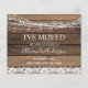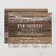 Budget Rustic Farmhouse Wood, String Light and Lace We have Moved New Home or New Address cards - includes beautiful and elegant script typography for the special New Home or New Address celebration.