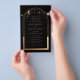 Budget Mystical Black Gold Sun Moon Astronomy Wedding Invitations features gold sun, moon and stars with a golden frame on a black background. Inside is your custom wedding invitation information. Personalize by editing the text in the text boxes. Designed for you by Evco Studio www.zazzle.com/store/evcostudio